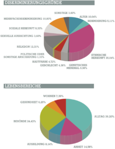 Gleichbleibend sind laut Statistik die Diskriminierungen aufgrund der ethnischen Herkunft, der Religion sowie der Hautfarbe: Mehr als die Hälfte (52,07 Prozent) aller Fälle waren im Jahr 2018 auf diese drei Diskriminierungsgründe zurückzuführen. 2017 waren es im Vergleich insgesamt 53,6 Prozent. Grabovac: „Viele in den Communities haben die Hoffnung auf eine Verbesserung ihrer Lage inzwischen leider bereits aufgegeben. Hier ist es umso wichtiger, dass wir als Antidiskriminierungsstelle ein Sprachrohr für jene Menschen bleiben, die selbst nicht laut genug sein können oder wollen.“
